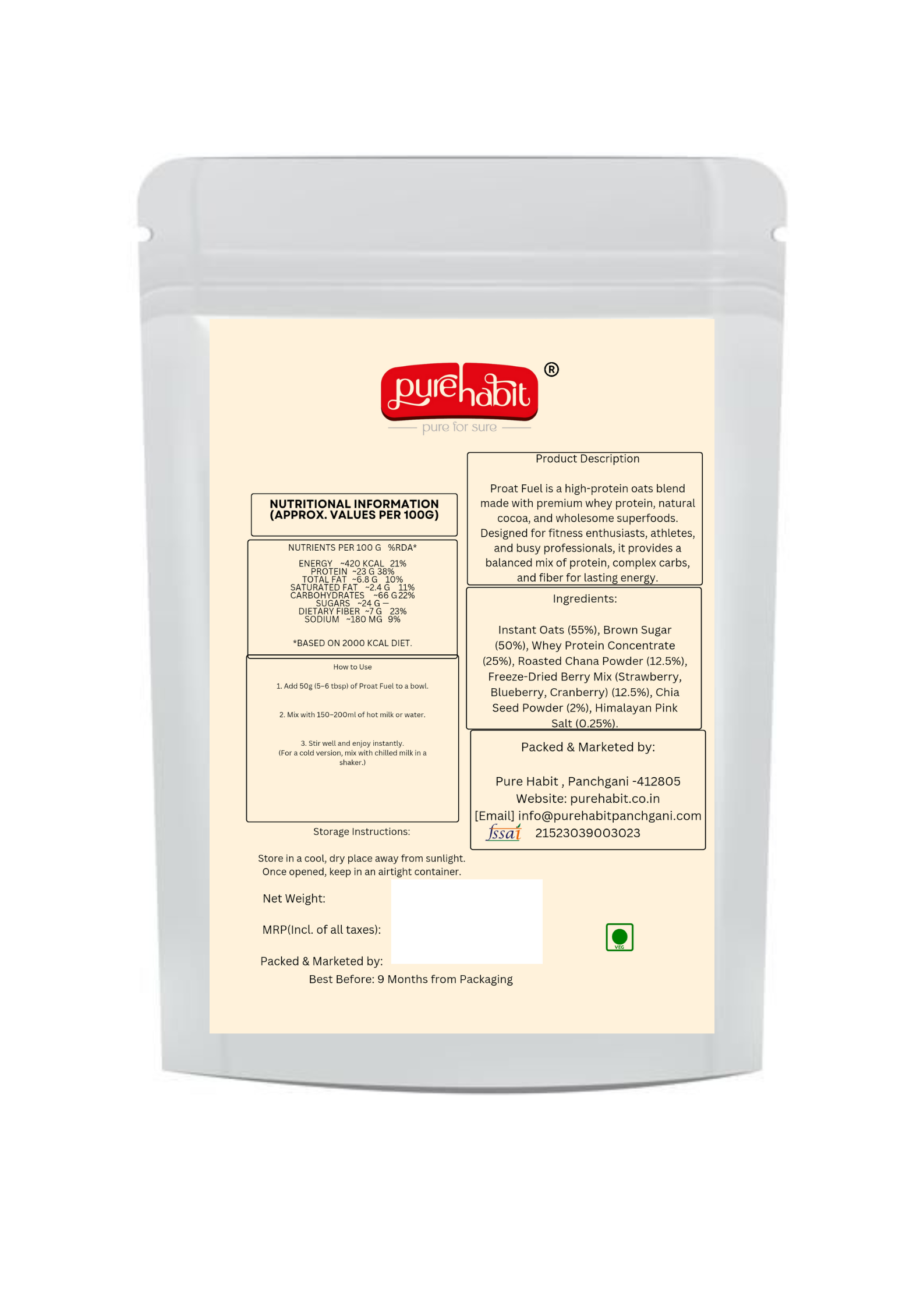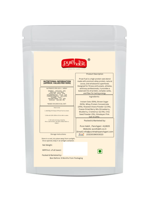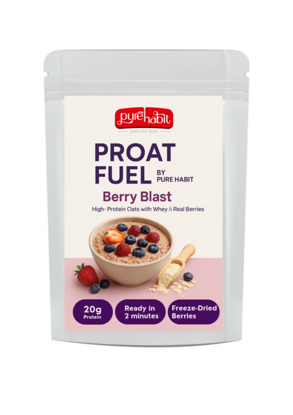 Proat Fuel by Pure Habit – Berry Blast combines wholesome oats with added protein and a medley of antioxidant-rich berries. This nutritious blend delivers long-lasting energy, supports muscle recovery, and keeps you fuller for longer—making it a smart choice for both fitness and everyday health.