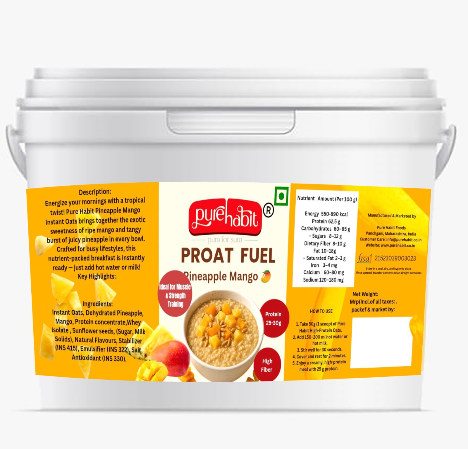 Proat Fuel Pineapple Mango Instant Oats is developed for those who enjoy bright, fruity flavours along with functional nutrition. This blend combines quality oats with pineapple and mango flavour to deliver a refreshing and enjoyable taste experience.