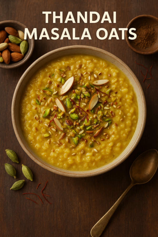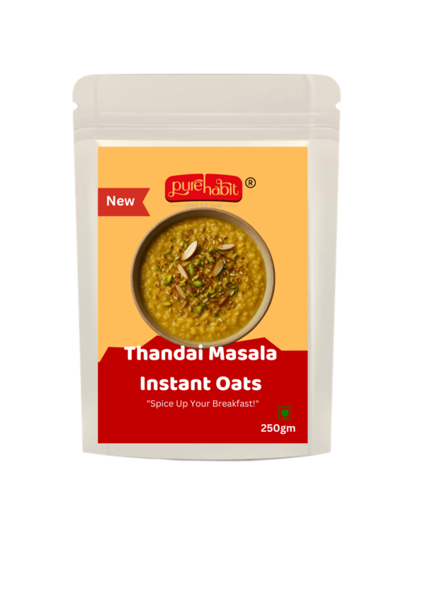 Pure Habit Instant Oats – Thandai Masala brings the festive richness of traditional thandai into a wholesome oats recipe. A royal blend of saffron, cardamom, almonds, pistachios, and fragrant spices, this instant oats mix is delicious, energizing, and nourishing. Perfect for a quick breakfast or an evening snack, ready in just 3 minutes!